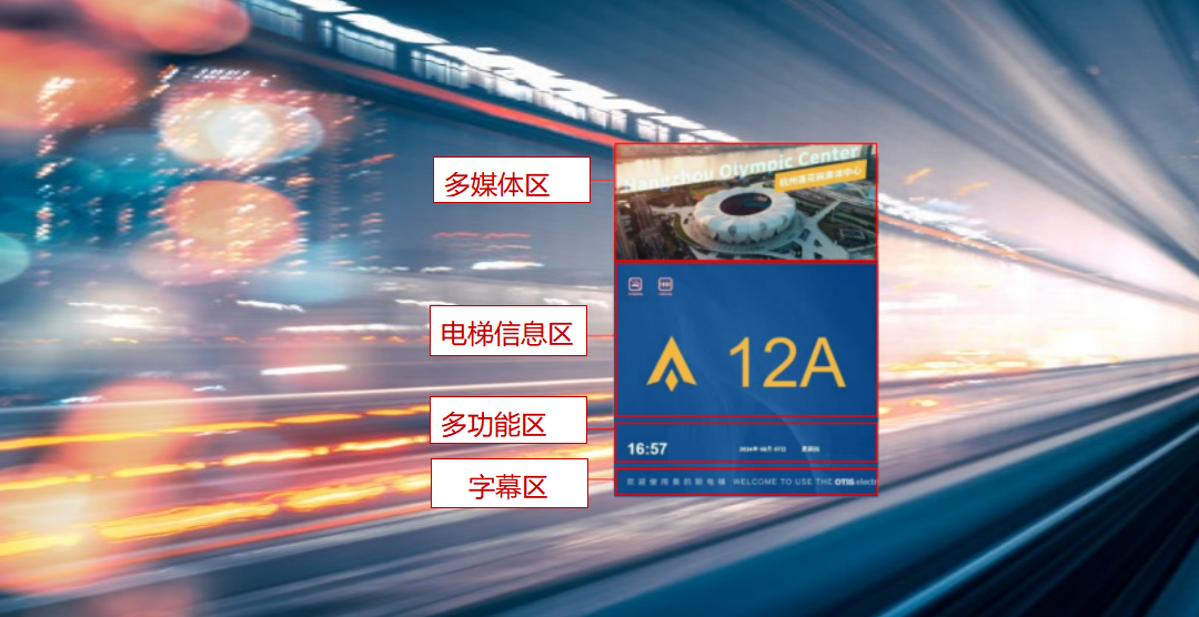 1.电梯运行信息:楼层信息、运行方向、特殊功能图标:火警、退出服务等